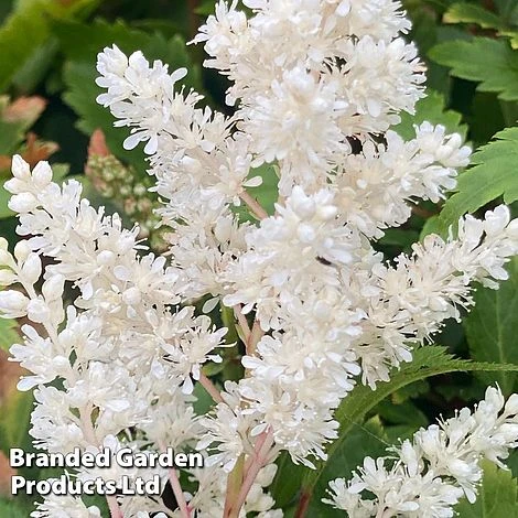 Astilbe โAstary Whiteโ is a compact dwarf variety that certainly does not compromise on display! Dense conical panicles of fragrant, pure white flowers rise above the glossy dark green foliage in summer, creating masses of feathery plumes. The spent flowerheads continue to look attractive once they have dried. This damp-loving, shade-tolerant hardy perennial is perfect for pots, borders and streamsides. Height and spread: 30-40cm (12-16in).