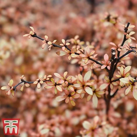 This eye-catching Japanese Barberry has much to offer. The young foliage emerges yellow on blood red stems which are speckled with dainty white flowers throughout spring. The nectar rich blooms of Berberis thunbergii ‘Golden Dream’ are loved by pollinating insects. By summer, the leaves mature to yellow-green, before changing once more to brilliant orange, contrasting perfectly with the red autumn berries. With an open, branching habit and a long season of interest, this deciduous shrub is ideal for creating colour accents among shrub borders. Height and spread: 150cm (60″).