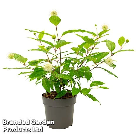 This unusual deciduous shrub is rarely seen in UK gardens. Commonly known as the button bush, Cephalanthus occidentalis bears creamy-white, rounded, button-like flowers from late summer to autumn, with powerful fragrance. The blooms are followed by spherical golden brown fruits that extend its season of interest well into winter. Both the blooms and the fruits are attractive to wildlife, making this a useful addition to wildlife areas. Height: 200cm (78โ). Spread: 250cm (98โ).