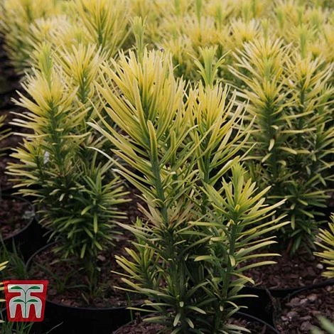 This slow growing conifer has a Yew-like appearance, with long gold-tipped needles that mature to green in winter. Cephalotaxus harringtonia ‘Korean Gold’ is a columnar variety with a compact narrow growth habit that forms a golden exclamation mark in the garden! Commonly known as Plum Yew it enjoys a cool, moist position and makes a useful specimen plant for shaded woodland areas. It also responds well to hard pruning making it suitable as an evergreen hedging plant. Over time it makes a majestic specimen, but will require patience, growing to just half its mature size in around 15 years. Height: 3m (10′). Spread: 2m (6′).
