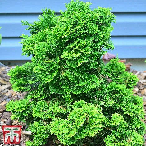 This dwarf Hinoki Cypress bears young foliage tipped with gold before darkening to green with maturity. Chamaecyparis obtusa ‘Meroke Twin’ is an upright conifer with a dense columnar habit. This compact evergreen makes a handsome specimen tree for borders, lawns and rockeries. Like all Cypress it is easy to grow and requires little maintenance. Height: 100cm (39″). Spread: 120cm (48″).