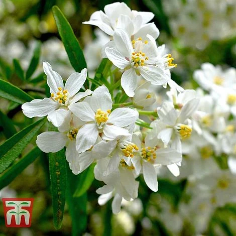 This well known RHS AGM variety is highly regarded for its narrow, dark green, glossy foliage and clusters of white, star shaped flowers. The fragrant blooms first appear in spring, but give a second flush in late summer. Choisya x dewitteana ‘Aztec Pearl’ is reliable, coping well in a wide range of growing conditions, including coastal gardens. This handsome, bushy evergreen shrub is easy to grow and makes a superb specimen shrub or hedging plant. Height and spread: 200cm (78″).