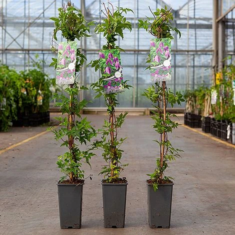 Looking exquisitely fragile and yet superbly robust, Clematis alpina is a tough, mountain species which survives temperatures down to -40 and doesnโt demand any attention. In return, it bears masses of dainty, nodding blue flowers with prominent white stamens from March to mid May, followed by fluffy seedheads. Aside from removing any dead or damaged growth, routine pruning is not required. Grow on a wall or support, scramble up a shrub or plant in a patio container. Height: 3m (9′). Spread: 1.5m (5′).