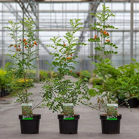 This unusual shrub delivers interesting flowers in a rare colour, beautiful foliage and intriguing, bladder-like seedpods. Colutea media โCopper Beautyโ is a vigorous, bushy shrub with blue-green ladder-like leaves composed of 5 or 6 leaflets. In June and July, it is covered in racemes of 3 to 8 pea-like flowers in a lovely bronze-orange spotted with yellow markings. The flowers are followed by striking, red-tinged, bladder-like seed pods about 8cm long. The pods inflate as the seeds ripen and pop loudly when squeezed making them irresistible to curious children! Colutea media โCopper Beautyโ is easy to grow in a hot, sunny border with freely draining soil. Resistant to pollution it suits urban gardens and grows well in coastal locations and on dry banks. Its size can easily be restricted by pruning after flowering. Height and spread: 3m (10ft).