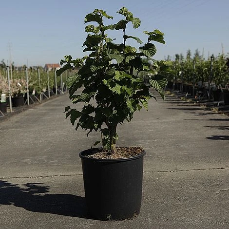 Also known as โHallโs Giantโ, the Giant in the name refers to the large-sized nuts and heavy bearing nature of this fruiting variety of cob nut, rather than its overall size. Corylus โMerveille De Bollwillerโ is actually a usefully compact variety, reaching only about 3m. Itโs an old, late-season cultivar originating in France, that produces high yields of medium to large, glossy brown nuts. Although the nuts are not as large as some modern varieties they are noted for their excellent flavour. They are ready to harvest in October and can be eaten fresh or stored for later use. Attractive, pendulous yellow catkins hang from bare branches in late winter providing additional interest and an early source of food for pollinators. Partially self-fertile, Corylus โMerveille De Bollwillerโ produces the best crops when it has at least one different pollination partner including wild hazel. It is a good pollinator of other varieties. Height and spread: 3m (10ft).
