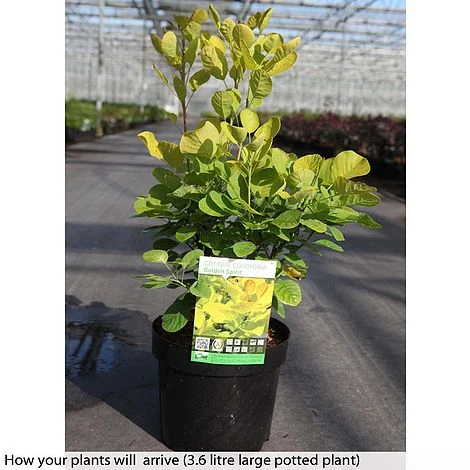 A golden smoke bush that will light up summer borders with its bright yellow, oval shaped foliage. Cotinus coggygria ‘Golden Spirit’ bears frothy plumes of subtle green flowers from midsummer, before the cool chill of autumn sets the foliage ablaze with vibrant shades of orange and red. Cotinus โGolden Spiritโ is easy to grow and holds an RHS AGM for its excellent garden performance. This hardy deciduous shrub makes a superb specimen plant or focal point for the back of a sunny border. Height and spread: 5m (16โ).