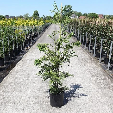 Striking, cockscomb-like growth adds an unusual twist to this variety of Japanese Cedar. Cryptomeria japonica โCristataโ bears an attribute known as โfasciationโ that causes flattening and distortion of the stem tips. The crested growth is scattered throughout and sometimes grows as large as a hand. Despite its modern looks, this slow-growing cedar is actually an old Japanese cultivar dating from before 1900 and is one of the most vigorous varieties displaying fasciated growth. Eventually growing into a slender, conical tree with upturned branches and dense, bright green foliage, it makes an eye-catching specimen. ‘Cristata’ takes pruning well and makes an excellent subject for topiary or bonsai. Height: 4m (13ft). Spread: 2m (6.5ft) in 10yrs.