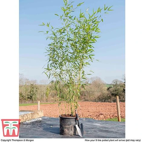 Phyllostachys aurea is a fully hardy, evergreen, strong-growing bamboo that holds a prestigious RHS AGM. It produces mid-green, hollow, grooved, canes, which turn to a caramel-brown colour on maturity. Slender, lance shaped golden-green leaves decorate the stems all year round. Although it naturally spreads via undergroound rhizhomes, Fish-pole Bamboo tends to behave more like a clump formng variety in cooler climates, making it easy to manage and maintain. Height: 8m (26′). Width: 4m (13′).