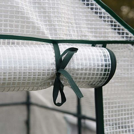 The white PE covers allow for maximum sun penetration whilst keeping the plants protected from the elements. It features double stitched seams for maximum durability and has a double zip door that can be rolled up for easy access.