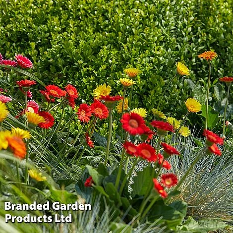 The most floriferous of all hardy Gerberas, this new โCheeky Collection’ will keep smiling its vibrant blooms all summer long. These cheeky blooms come in a kaleidoscope of cheerful colours which really pop against each other.