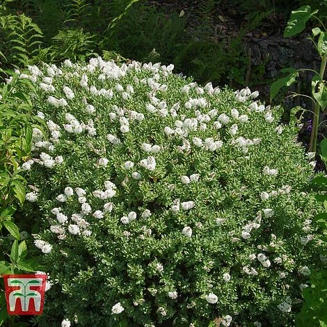 Hebe rakaiensis has a wonderful rounded habit that forms a low, dense cushion of glossy green foliage. This hardy evergreen shrub is topped with a covering of short, white flower spikes from early summer, which always attract pollinating insects. Itโs neat, compact shape lends itself beautifully to oriental planting schemes, rockeries and the front of sunny borders, where it will add year round colour and structure. This RHS AGM variety is particularly useful for coastal or city gardens, given its tolerance for polluted and salt laden air. Height: 100cm (39″). Spread: 120cm (48″).