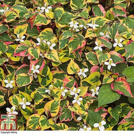 The heart-shaped leaves of Houttuynia cordata ‘Chameleon’ are completely unique, with splashes of green, gold and red. When crushed, the foliage emits a pungent orange fragrance. Throughout mid-summer, the spreading stems are covered in pure white flowers. Houttuynia makes excellent ground cover through borders or around boggy pond margins. Height: 30cm (12″). Spread: 100cm (39″).