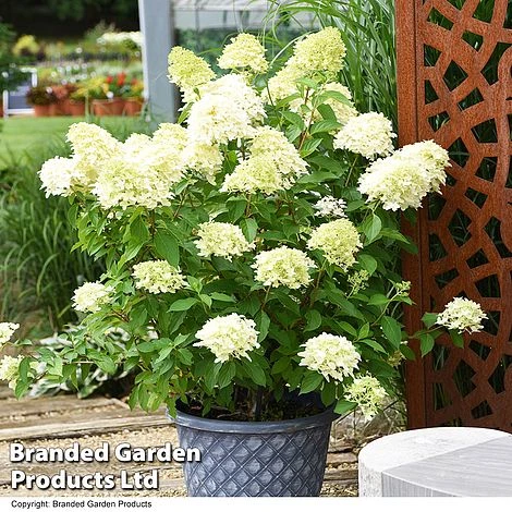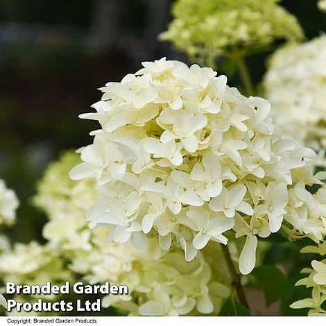 A sumptuous variety, Hydrangea paniculata โSkyfallโ bears very large conical heads composed of flowers with distinctively narrow, starry petals giving the whole panicle the appearance of an enormous hyacinth. Greenish buds open into creamy white panicles maturing to white and then taking on pink tints as they age. Despite the heavy weight of the supersized panicles, strongly erect stems hold them pointing skywards! A wonderful shrub for adding glamour to borders, especially ones in part shade, and a stunning specimen for a large patio pot. Height: 120cm (48in). Spread: 80cm (32in).