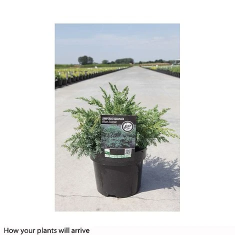 Juniperus squamata ‘Blue Swede’ is a handsome conifer with a lovely spreading habit. The dense foliage is carried in feathery sprays that remain blue-green throughout summer, but turn to silver-blue over the winter months. This Flaky Juniper is compact and manageable, with a slow growth rate, so it won’t take over the garden. A excellent dwarf conifer for creating evergreen colour and texture in borders and rockeries. Height: 120cm (48″). Spread: 150cm (59″).
