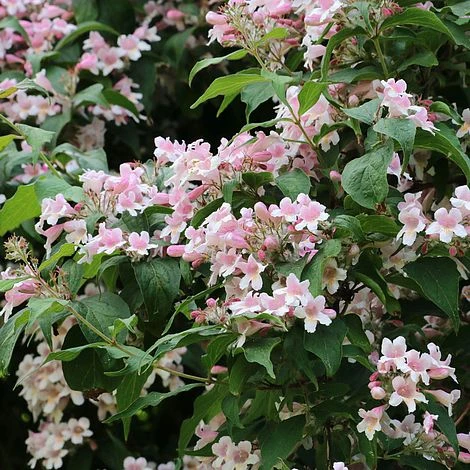 Not always seen in the UK, Kolkwitzia amabilis is fast-growing, hardy and will be one of the first shrubs to begin flowering in the summer. Plants are versatile, and will grow in many different soil types. Plant at the back of a mixed herbaceous border for a real treat! Height: 3m (10′). Spread: 4m (12′).