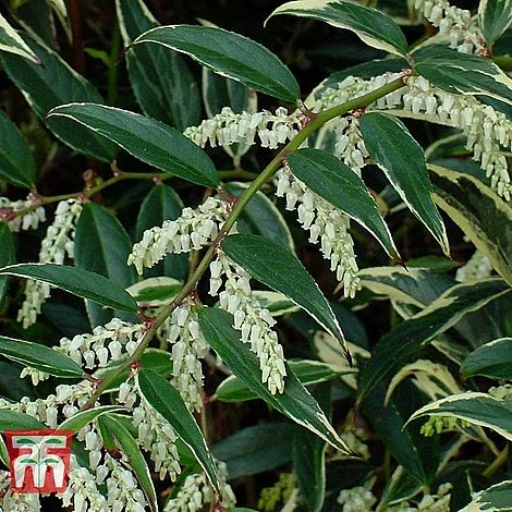 Leucothoe fontanesiana ‘Whitewater’ is more subtle than some cultivars, with small racemes of white flowers that droop from red stems throughout spring. But it is the slender, glossy foliage for which this shrub is really grown. Each dark green leaf is delicately edged with a cream margin. Throughout summer this evergreen remains refined and elegant, before transforming in autumn to a riot of crimson and scarlet. A lovely rounded shrub for shaded acid borders, which requires very little maintenance. Height and spread: 120cm (48″).
