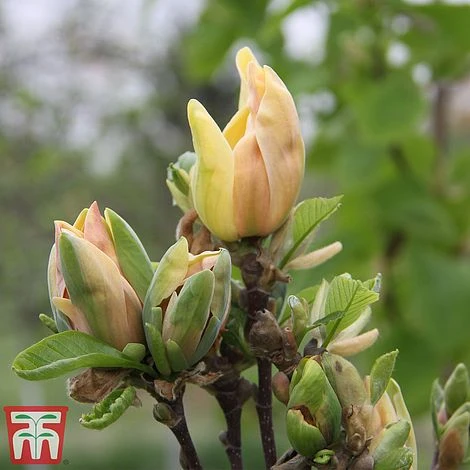 Magnolia โSunspireโ is a naturally upright variety forming a columnar shape with maturity. The large showy blooms are borne late in the season, from April to May, avoiding almost all risk of frost damage. Large, tapered buds open to reveal a glorious display of golden petals that will brighten the garden in spring. This deciduous Magnolia makes a splendid specimen shrub for a spring focal point in the garden. Height: 4m (13โ). Spread: 2.5m (8โ).