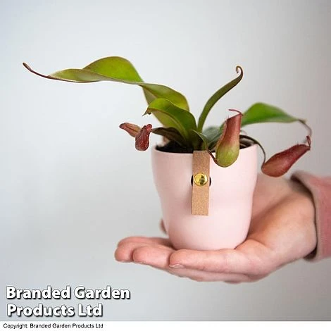 A native of tropical rainforests, these wacky pitcher plants are a botanical curiosity which is bound to draw attention and make an unusual feature for a hanging planter. Also known by the name โmonkey cupsโ, it was once thought that monkeys drunk water from their pitchers! The pitchers hang down from tendrils growing from the leaf tips and are full of digestive juices. Insects are attracted by sweet-smelling nectar within the lid of the pitcher and then lose their footing on its slippery lips, tumbling down into the pool of digestive juices below. Nepenthes โBlood Redโ has especially eye-catching pitchers, bi-coloured red and pale green. Colouration is varied throughout the season. Height: 40cm (16โ). Spread: 30cm (12โ).