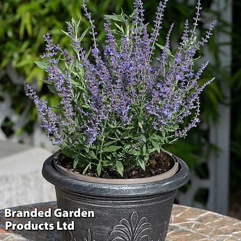 Many varieties of Perovskia begin to flower very late in the season and their lax branches are prone to flopping by the end of the summer. However, Perovskia โBluesetteโ is a lovely compact cultivar producing masses of bright blue flowers much earlier and for a longer period than others. The flowers are held on branching stems which remain tidy and upright. Blooming profusely from summer to autumn, its nectar-rich flowers are a magnet for pollinators whilst the silvery, fragrant foliage is an additional feature. Drought tolerant, it works well at the front of a dry, sunny border or in a sun-baked patio pot. Height and spread: 50cm (20in).
