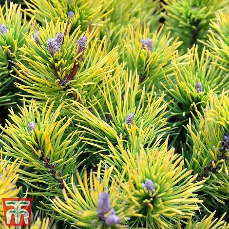 Pinus mugo ‘Carsten’s Wintergold’ is extremely slow growing, forming a flattened mound of open branches that remain neat and compact. Green needles in spring and summer turn a beautiful golden-yellow as winter approaches, bringing a glowing splash of colour to the garden during the bleakest months. Tiny, brown cones form in autumn, adding yet more seasonal interest. This superb specimen plant is a must have for the rockery to complement green needled conifers. Its dwarf habit also majkes it an excellent container plant for the patio or balcony. Height and spread: 60cm (2′).