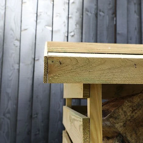 This wooden log store is easy to build and is made from pressure treated timber. The timber has been placed into a vacuum and a high quality timber preservative has been compacted into the fibres of the wood. This offers the best protection against weather damage and will look great for many years to come.