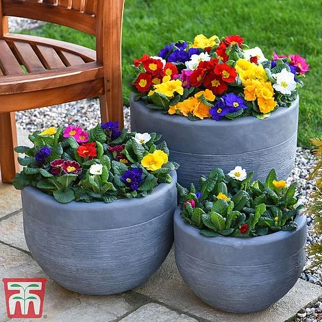 Create a party in your patio pots with this long lasting mix of some of our best Primrose varieties! Each has been chosen for its superb garden performance and slightly differing flowering period. The result is a blend of plants that provide colour from winter right through to the middle of spring! Primrose ‘100 Days of Flower’ are the perfect choice for low maintenance pots, creating annual bedding displays, or edging paths and borders. Height and spread: 20cm (8″).