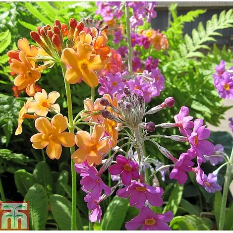 This RHS AGM species bears candelabras of mauve pink flowers in loose tiers around stiffly upright stems. Beeโs Primrose produces large rosettes of foliage that make good ground cover when planted in groups. Primula beesiana is a striking perennial that looks magnificent in the damp soils at the edge of ponds or dotted throughout bog gardens. Height and spread: 60cm (24″).