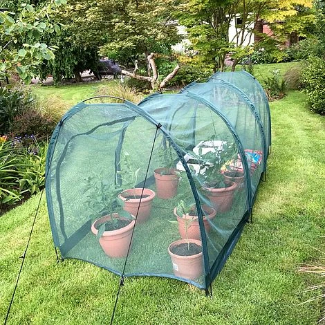 Ultra high quality advanced crop protection for serious gardeners. The Pro Gro solves the problems of flimsy โhoop and wireโ tunnels, which can rust and sag over time, potentially damaging the plants inside. Pro Gro tunnels feature flexible carbon fibre rods that maintain shape and tension over time, with ballast pockets and guy ropes for wind stability. The 4mm mesh softy-touch netting guards against a range of pests from birds and squirrels through to cabbage whites and other large insects. They assemble in minutes with no tools needed and pack down into a small bag for easy storage out of season. Large zipped doors allow easy access to crops and help regulate heat, humidity and airflow for optimum growing conditions. An ideal growing environment for a wide range of crops including strawberries, salads, sprouts, cabbages, cauliflowers, chillies and small tomato plants. Use over raised beds and grow patches in both garden and allotment. Comes with securing ground pegs.