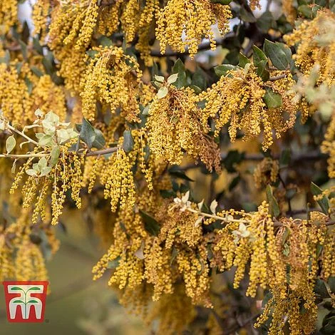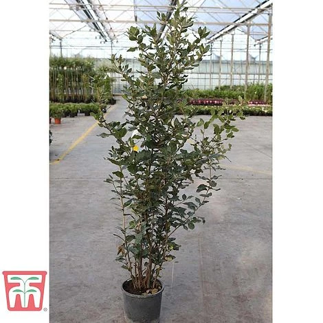 The Holm Oak is an easy to grow evergreen, which can either be grown as a full-sized tree, or clipped into a hedge. The glossy, tough foliage has a contrasting white underside, and is later accompanied by shiny acorns.