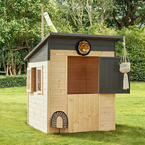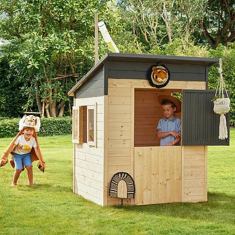 The Santa Monica playhouse tries to replicate the beach experience in your kids’ own garden. This Soulet playhouse, which was inspired by seaside cabins, has an internal surface area of 1.35 m2 and a flat roof with a single slope. It has a reinforced floor, a plexi window, and a closed door that provide plenty of room for play and garden exploration. It is intended to house 2 kids at once. Its distinctive design, which claims larger height and door size compared to other models, will enchant kids and ensure longer periods of outdoor play.