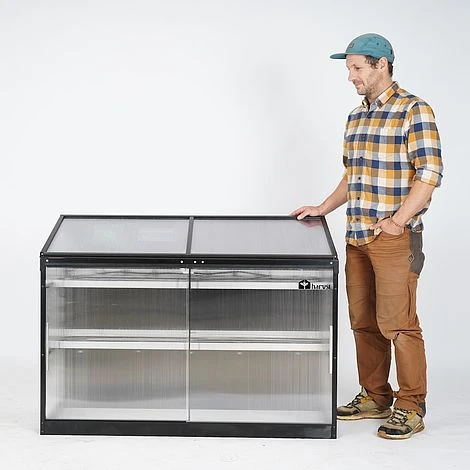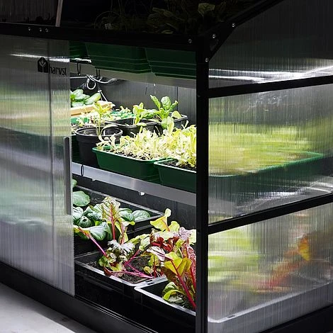 The Sprout S14 can take 14 standard sized seed trays on two shelves and the base in the 4 Season model. (a second shelf is available to upgrade the GH, Solar and 3-season models).