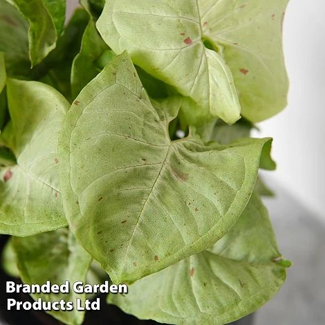 Syngonium โConfettiโ instantly lifts interiors with a splash of tropical colour, boasting elegantly shaped foliage, decorated with painterly splashes and variegation. This easy-going aroid has pale green, arrow-shaped leaves marbled with irregular pink splashes and spots. Maximum height & spread: 60cm (24in).