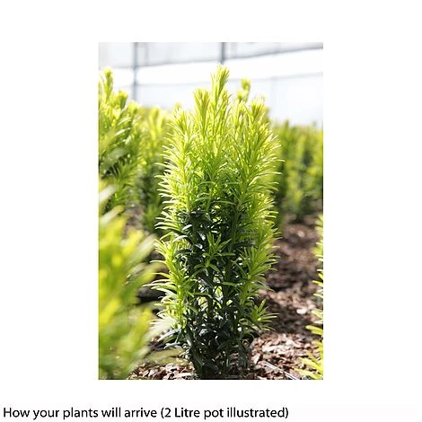A columnar variegated Yew, painted in a creamy-white which turns yellow in the summer months. It will thrive in most UK soils and this evergreen shrub prefers a cold, exposed site. Unlike other Yews, Taxus baccata ‘Ivory Tower’ prefers to be in full sun, but will tolerate shade. Be careful though, this plant is toxic if eaten by people or animals. Height: 300cm (118″). Spread: 30cm (12″).