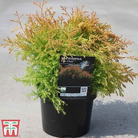 This recently introduced conifer has a neat, dwarf habit that will be an asset to any garden. The dense branches form a compact, globe-shaped, evergreen shrub with maturity that provides colour and structure throughout the year. Thuja occidentalis ‘Fire Chief’ is so named for its colourful foliage which is bright gold in spring, deepening to bronze during the summer months, and later intensifying to russet red in autumn. Perfect for rockeries, containers and the front of borders. Height and spread: 120cm (48″).