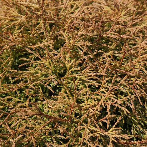This attractive conifer provides fabulous year round structure and colour in the garden. The attractive yellow spring foliage gradually matures to orange and bronze as autumn approaches, maintaining this colour throughout the winter months. Thuja occidentalis ‘Golden Tuffet’ has a rounded, pillow-like habit with dense foliage that appears almost braided. This hardy evergreen makes an excellent specimen shrub in rockeries and borders and is virtually maintenance free. This ornamental white cedar also holds and RHS AGM. Height: 300cm (118″). Spread: 400cm (157″).