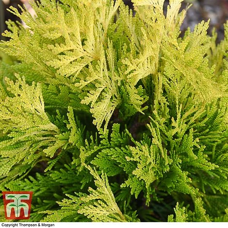 One of the newest Thuja’s, this conifer is a variety of Western Red Cedar. A stunning bright golden coloured foliage is held in upright sprays, forming a pyramidal shape plant. In winter, bright golden-yellow foliage lifts the garden, which in summer changes to a soft green with a dash of yellow overlay. If that wasn’t enough, autumn sees this shrub turning bright yellow and almost golden-orange until temperatures start to rise in spring. With Thuja plicata ‘4ever Goldy’ there is never a dull moment and definitely a plant worth considering. Height: 5m (16′). Spread: 2m (7′).