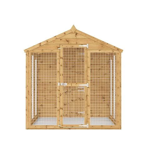 Consisting of two parts, this wooden pet house features a spacious sheltered area to the back and a large mesh area to the front. A stable door connects the two sections together, to allow your dog to move freely between sitting out in the fresh air or curling up inside! Featuring a full height roof, not only does the dog run feel open and airy, but it also makes maintaining and cleaning the kennel simple and easy.