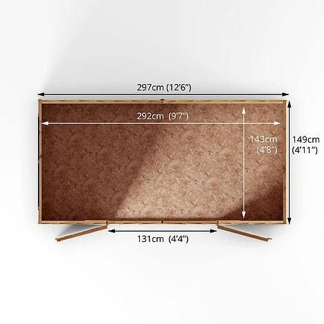 This building is manufactured here in the UK, using ethically sourced FSCยฎ certified timber. The walls of the structure are formed using overlapping horizontal boards that are fixed to a strong internal framing. This traditional method of construction creates a solid panel that encourages rain water to run off the building. Protecting your stored possessions from the elements. Solid Sheet Board forms the floor and roof of this structure. The perfect hard-wearing material for withstanding everyday use and general storage. The traditional apex roofline provides this workshop with generous head height. Ideal if you are looking to install storage units and store taller items.