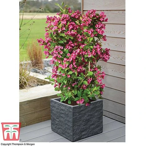 This magnificent duo of Weigela make a spectacular display in May and June. Specially selected for a columnar, upright habit, Weigela ‘Towers of Flowers’ยฎ are perfect for even the smallest of garden! These narrow, deciduous shrubs produce an abundance of trumpet-shaped blooms along the entire length of each stem, creating splendid pillars of colour. The stems are densely cloaked in dark green foliage which emerges with a bronze tint in early spring. Like all Weigela, they are loved by pollinating insects. Grow this duo in sunny borders or large containers in the patio. Height: 120cm (48″). Spread: 90cm (36″).